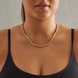 The Tericci tennis chain, a chain which delivers a powerful image. A single row of round cut stones, all of which are handset. The 3mm tennis chain brings a subtle look and a big shine, when looking to make a bold statement... Look no further.